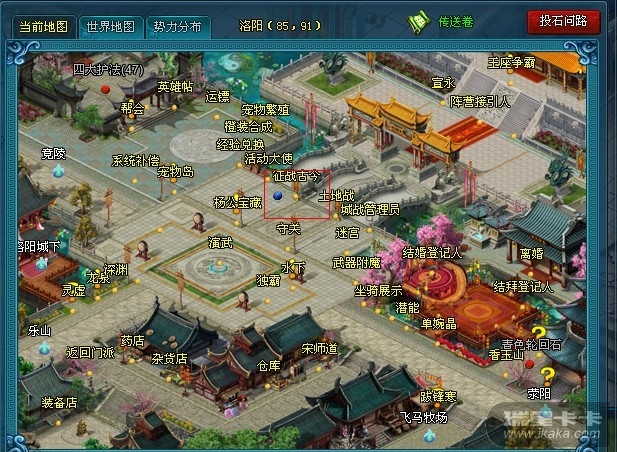 副本地图进入方式:洛阳城内NPC征战接引人【洛阳87,87】