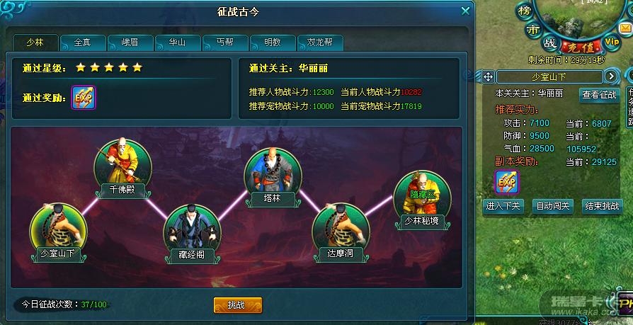 征战系统地图分为7个大区,每个大区下辖5个普通副本地图和一个隐藏地图,通关后可获得海量经验,隐藏地图通关更可获得珍贵物品;