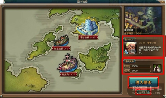 进入到副本选择界面后可以查看副本BOSS、通关奖励等信息;