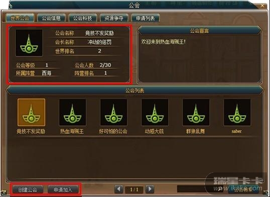 (1)公会界面左下方可以选择创建公会或加入其他玩家的公会;