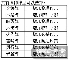游戏中升级阵型可以增加出战位置、激活阵型种类、给伙伴增加不同的属性,合理的运用阵型对战斗力的提升有事半功倍的效果。