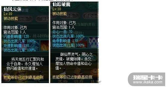 兑换:高级技能【仙风云体】和【仙踪破魔】