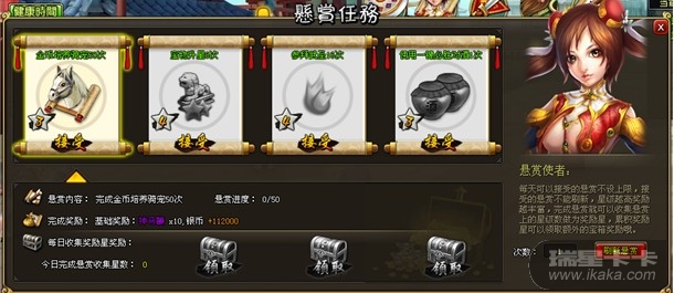 7)每完成一个悬赏任务,按完成任务的星级累积星级数,累积到一定星级获得额外奖励。