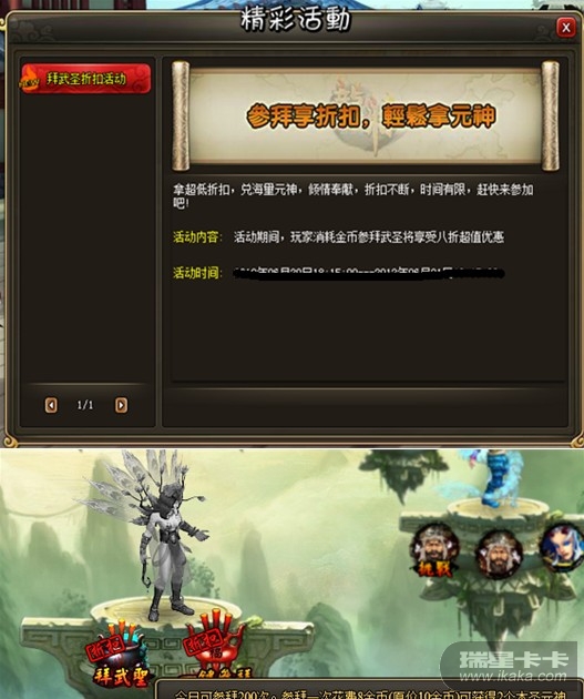 活动内容:活动期间内,玩家消耗金币参拜武圣将享受八折超值优惠
