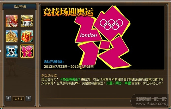 奥运会给力!《热血海贼王》更给力!活动周期内的两场竞技场结算奖励均将双倍获得