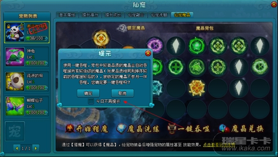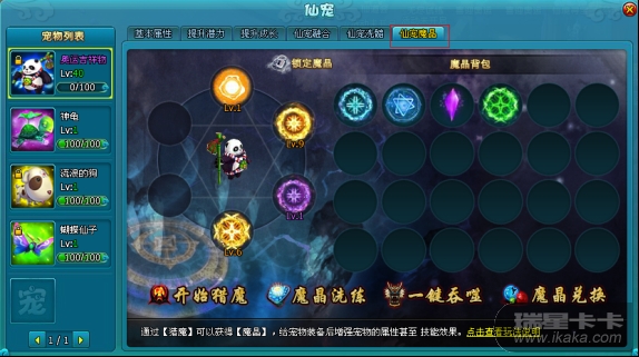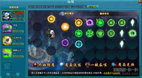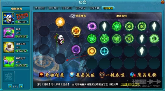 获得魔晶后,只要给宠物装配上,便可激发宠物的灵魂力量。一些