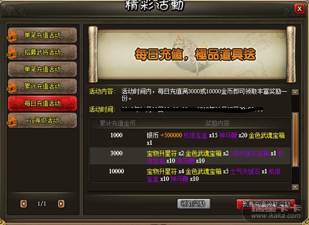 活动二:每日充值,极品道具送高额奖励比例,超值礼包充值免费送,机会不容错过!