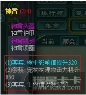 装备三件神隐套装可触发隐藏属性:增加宠物850点物理攻击值