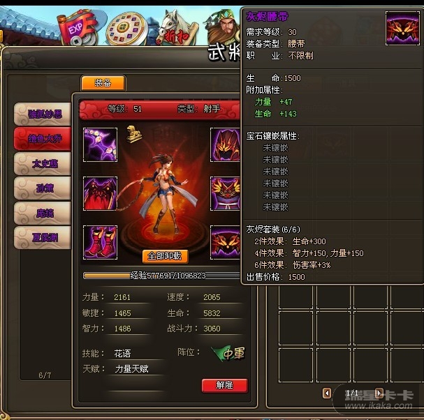 截图(包含主将名,套装属性截图)