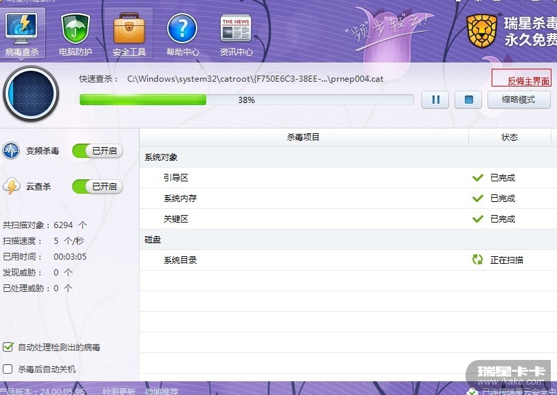 杀毒界面发现不人性化,杀毒的时候无法查看主界面 能否在增加一项返回主界面 然后 星星依然可以杀毒 如下图