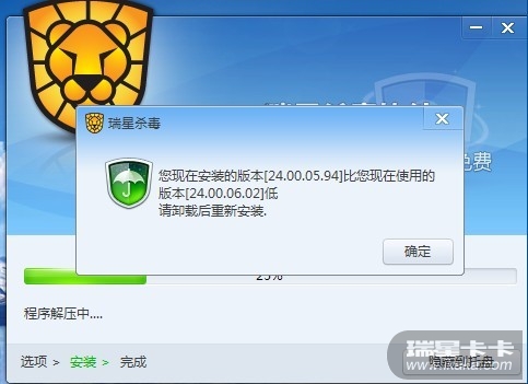 当初次下载安装V16时,没有卸载旧版的瑞星2012,发现会提示: