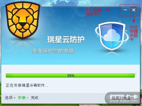 安装界面右上角的最小化和关闭选项格的宽度不一样问题已收集,感谢试用瑞星v16。