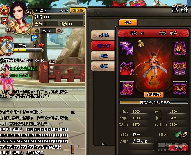 截图(包含主将名,套装属性截图)
