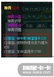 装备三件神霄套装可触发隐藏属性:增加宠物850点物理攻击值