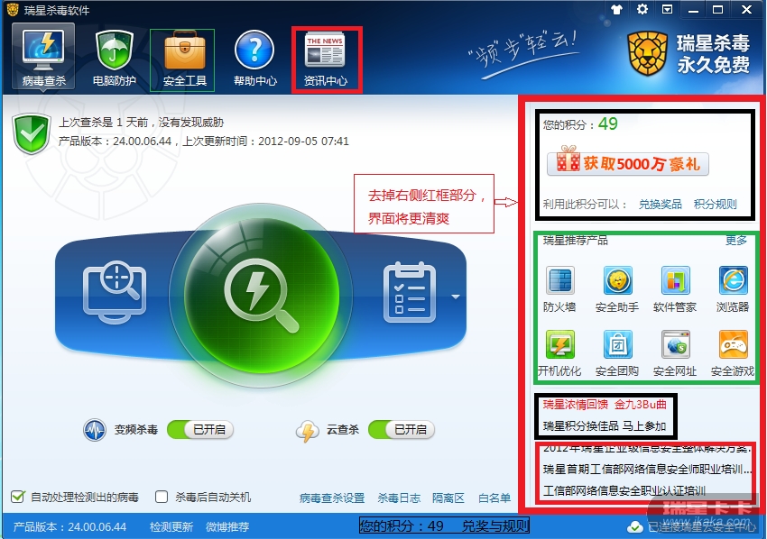 去掉重复部分,界面将更清爽,又与卫士管家相区别