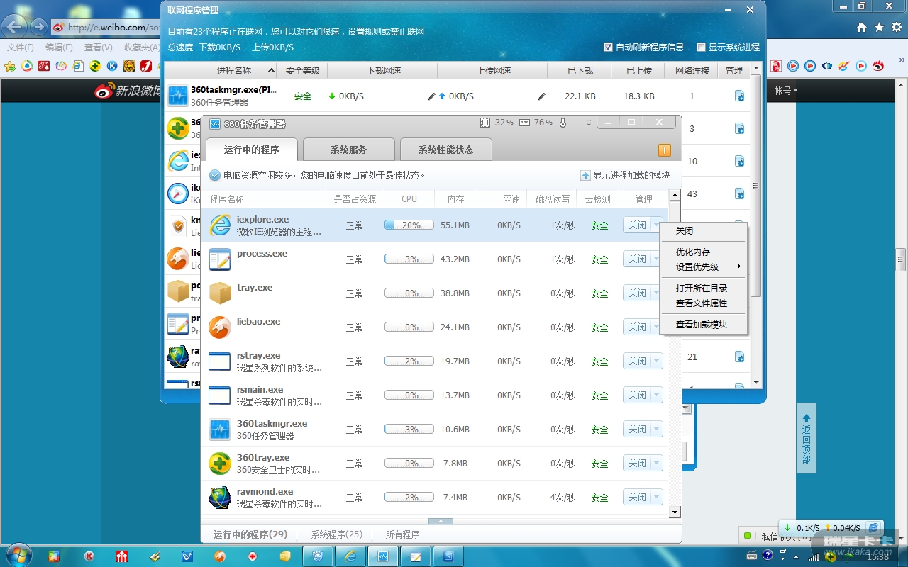 建议把联网程序管理与进程管理整合一下,在进程管理的基础上增加联网程序管理