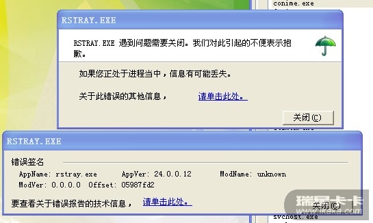 瑞星卡卡安全论坛个人产品讨论区瑞星杀毒软件瑞星杀毒软件V16+ 最近一段时间时不时的弹出RSTRAY.exe遇到错误