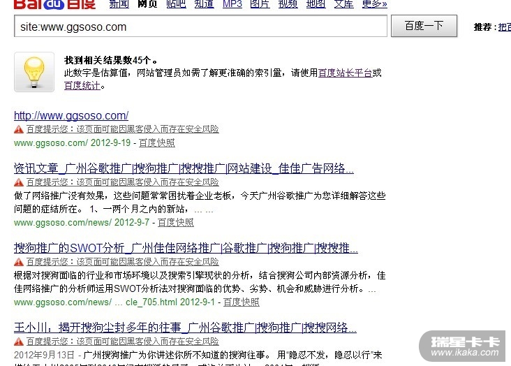 site:www.ggsoso.com 百度说我挂马、 site:ggsoso.com这两个都有啊,往后翻几页。看了一下网站没有什么异常,百度的网站安全检测工具能看到异常嘛?