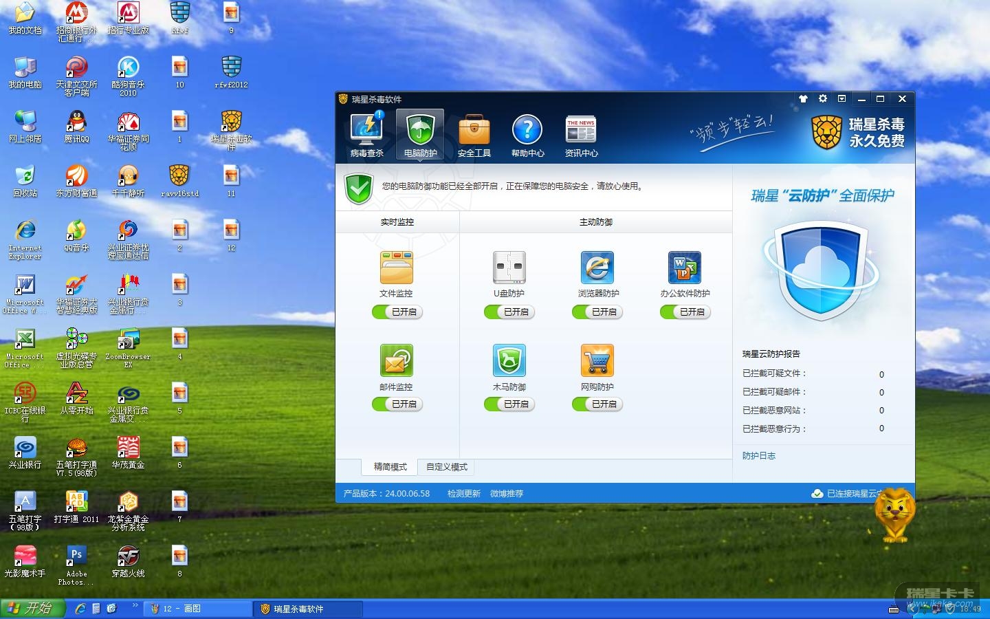 1、不保留用户配置文件卸载瑞星所有软件。即: