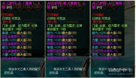 太乙护符:分天、地、人三种,全部属性均为固定属性,不存在变量,重置太乙护符属性将会随机获得其中一种太乙护符