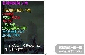 P.S之前购买的驯鹿的铜铃和圣诞老人的驯鹿鞭可在仙起镇执事处分别折算为3和7个翠玉珠,可以用于参与兑换人阶紫色宠物法宝:乾坤阴阳镜(在旧法宝折算为翠玉珠后,旧法宝会消失)