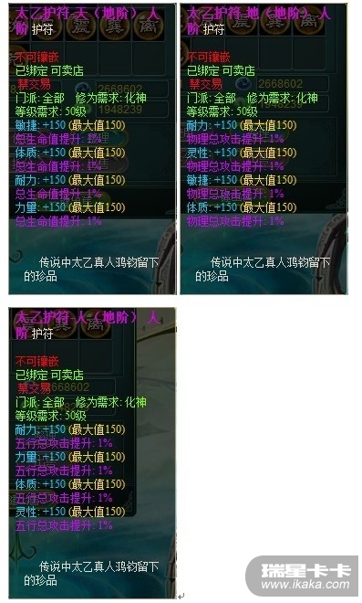 太乙护符:分天、地、人三种,全部属性均为固定属性,不存在变量,重置太乙护符属性将会随机获得其中一种太乙护符