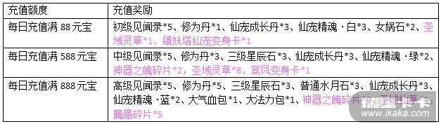 活动期间,玩家每日累计充值达到指定额度,即可获得对应的奖励,活动可重复参与。
