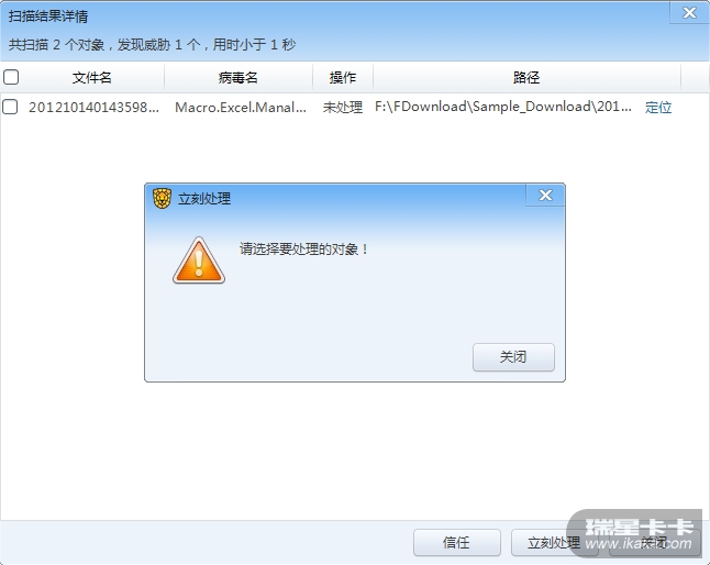 最新版本默认已经勾选了病毒扫描需要处理的对象,请将V16升级至最新版本观察。