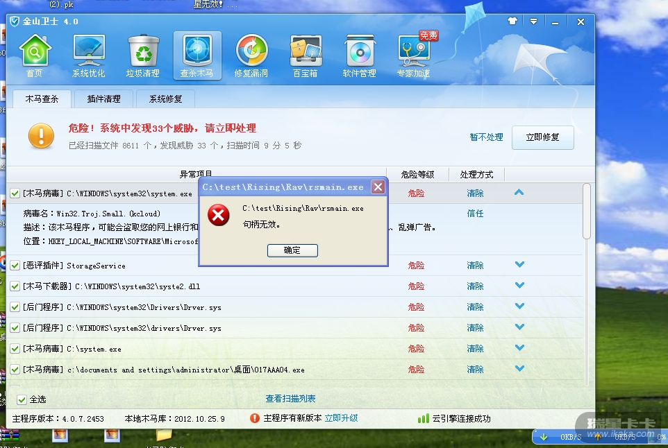 很久前运行的样本,现在也记不清当时到底用的是哪一个了。只是,现在修复功能无法“救活”瑞星,表示失望啊。