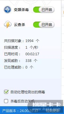 我瑞星卸载重新安装过了啊。也选择了自动处理,为啥没动静呢?