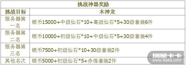 活动内容:活动时间内挑战木神龙成功,不仅可以获得神器神龙杖,还可获得额外的礼包奖励,奖励如下: