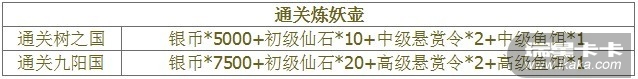 活动期间内,玩家首次通关树之国炼妖壶和九阳过炼妖壶,均可获得以下奖励: