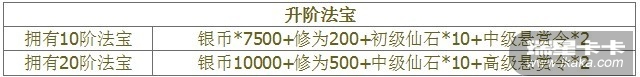 当玩家首次拥有一件10阶法宝与20阶法宝时,都将获得如下奖励: