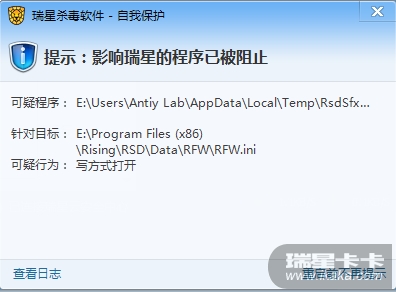 瑞星工程师12回复:此问题已知,请等待后续升级解决。