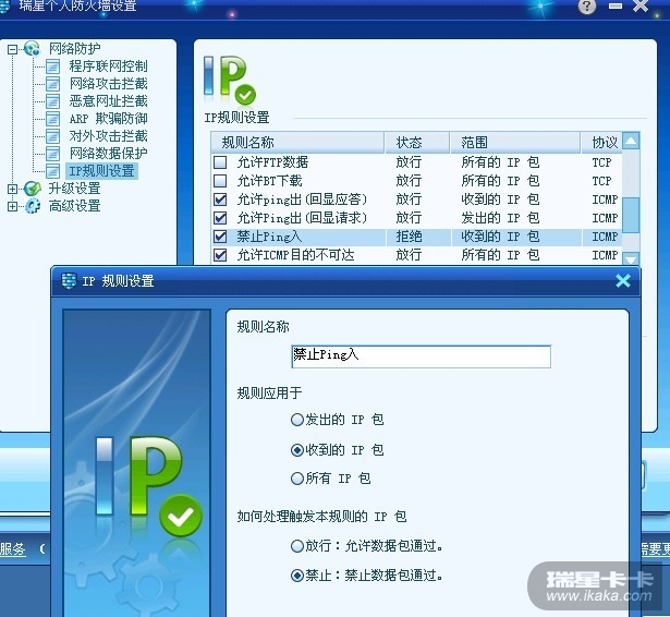 为什么我在IP规则设置里面设置了禁止ping入,可是我服务器的IP还是可以被别的终端ping通?
