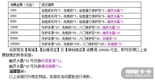 不同充值额度奖励可累积获得,奖励以信函方式发放,均为绑定。