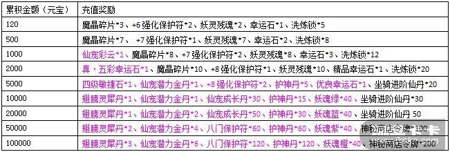 活动期间,玩家通过【商城】、【仙境寻宝】及【神秘商店】消费至指定额度,可获得额外的奖励。