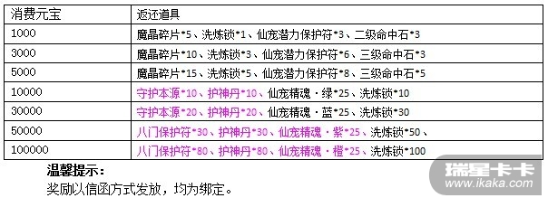 温馨提示:奖励物品为绑定,以信函方式发放。活动可重复参与,不设上限。