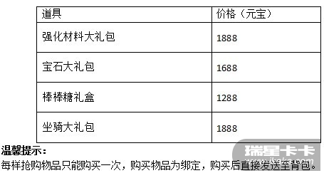 活动期间,将有超值限量礼包活动面板产出,奖励超值,欲购从速。