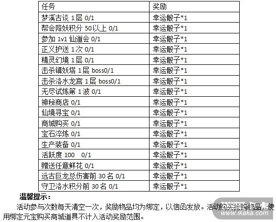 活动期间,玩家每日完成指定日常任务,可获得额外的奖励幸运骰子,使用幸运骰子,可在幸运大富翁中赢取让您意想不到的惊喜奖励哦。