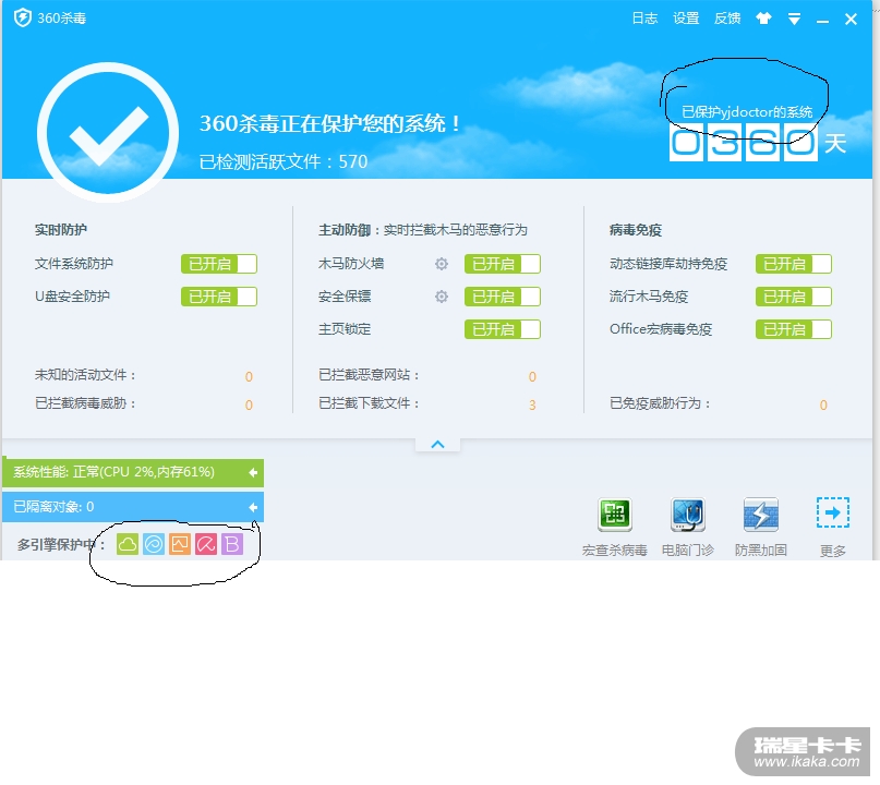 建议在瑞星杀毒上显示保护用户XP、win7系统多长时间,用户名可以自定义