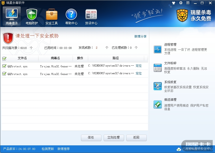 [疑似bug] 查出来病毒之后点立即处理没有反应