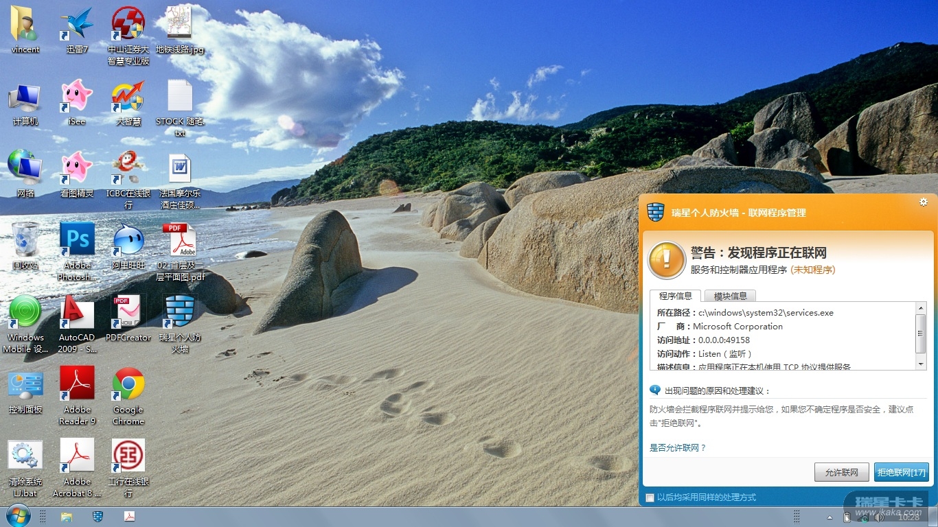 求答:开机出现"发现程序正在联网"---services.exe---listen 正常吗