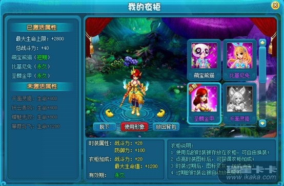 )过期的时装会被自动放回背包。如果想将衣柜时装放回背包,只要点击该时装图标,选择“放回背包”即可;4