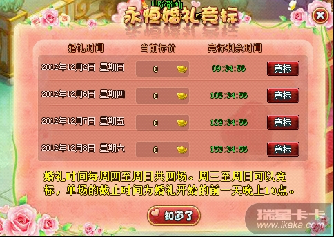每场竞标截止时间为婚礼前一天晚上22:00 b.