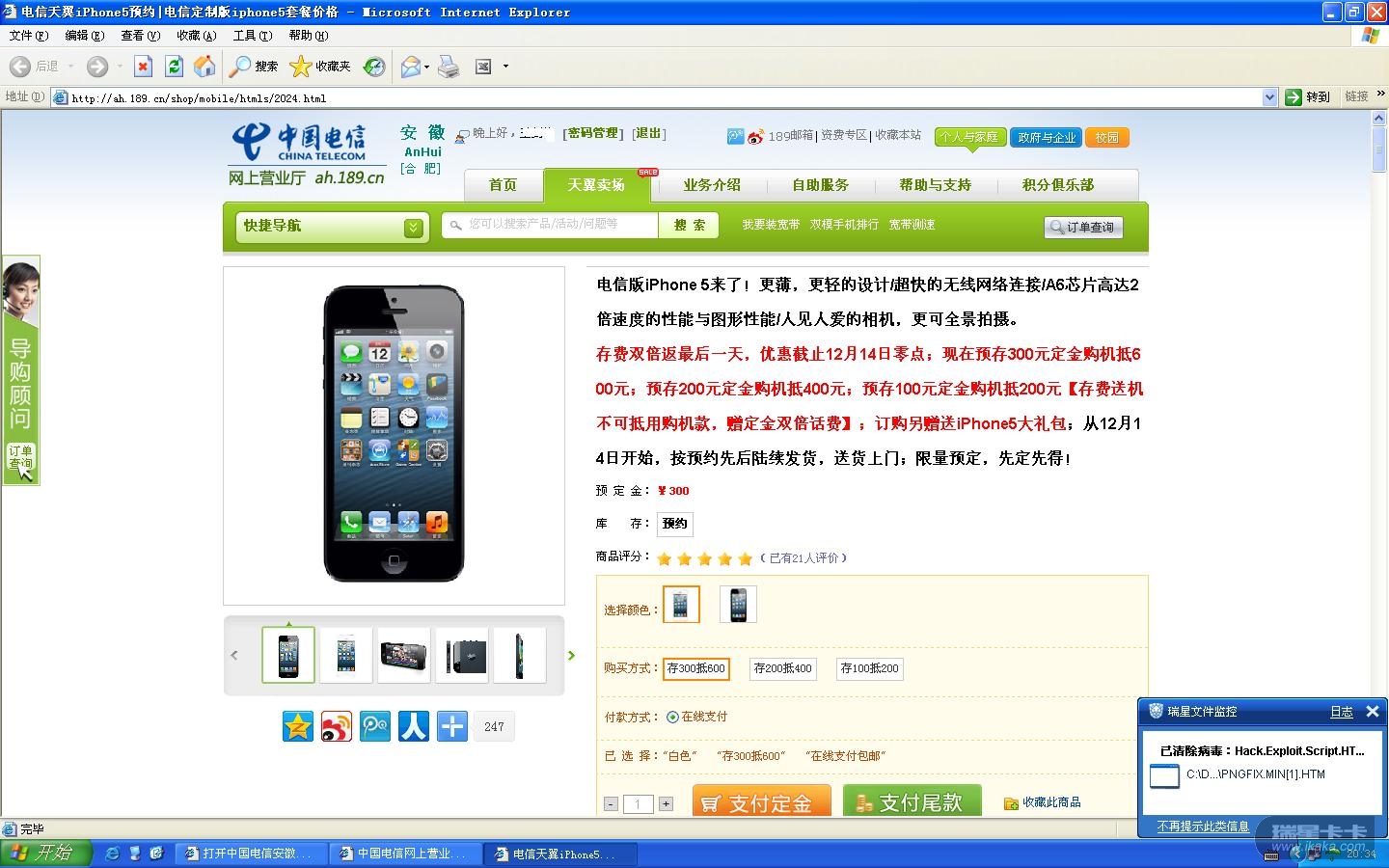 [求助] 打开中国电信安徽网上营业厅就报病毒,怎么回事啊!