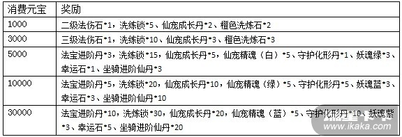 玩家若在指定系统消费满30000元宝,即可获得以上消费额度的所有奖励。