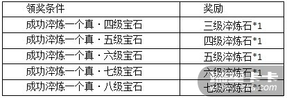 活动期间,玩家每淬炼成功一个指定级别的真·宝石,即可获得系统赠送的好礼一份。
