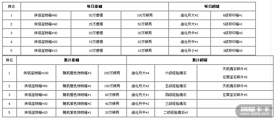 活动奖励: