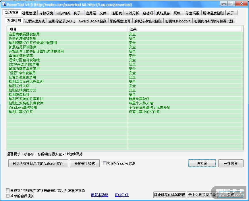 我这里想说的是,我可以对自己在本帖中提到的问题绝对负责,因为在提问之前就做了认真严格的测试,我不是在这里无理取闹,也没这个时间,至于QQ远程协助,本人不是没有QQ,我自己的QQ等级50级,但从未开通应用过空间、微博等无聊功能,平时只用来留言和给用户远程协助,本帖中的问题根本无需瑞星官方人员远程,问题的关键就是,我一直在反复动手测试,并试图找到原因,而我本帖中提到的问题,试问对我持怀疑态度的用户,你们自己动手测试过吗?目前该问题的测试版本为瑞星V16版本24.0.8.28,希望瑞星官方发现此问题后,升级修复之前,大家自己动手参照我一楼给出的注册表项,然后用我提到的2个软件设置修改启动项试试吧